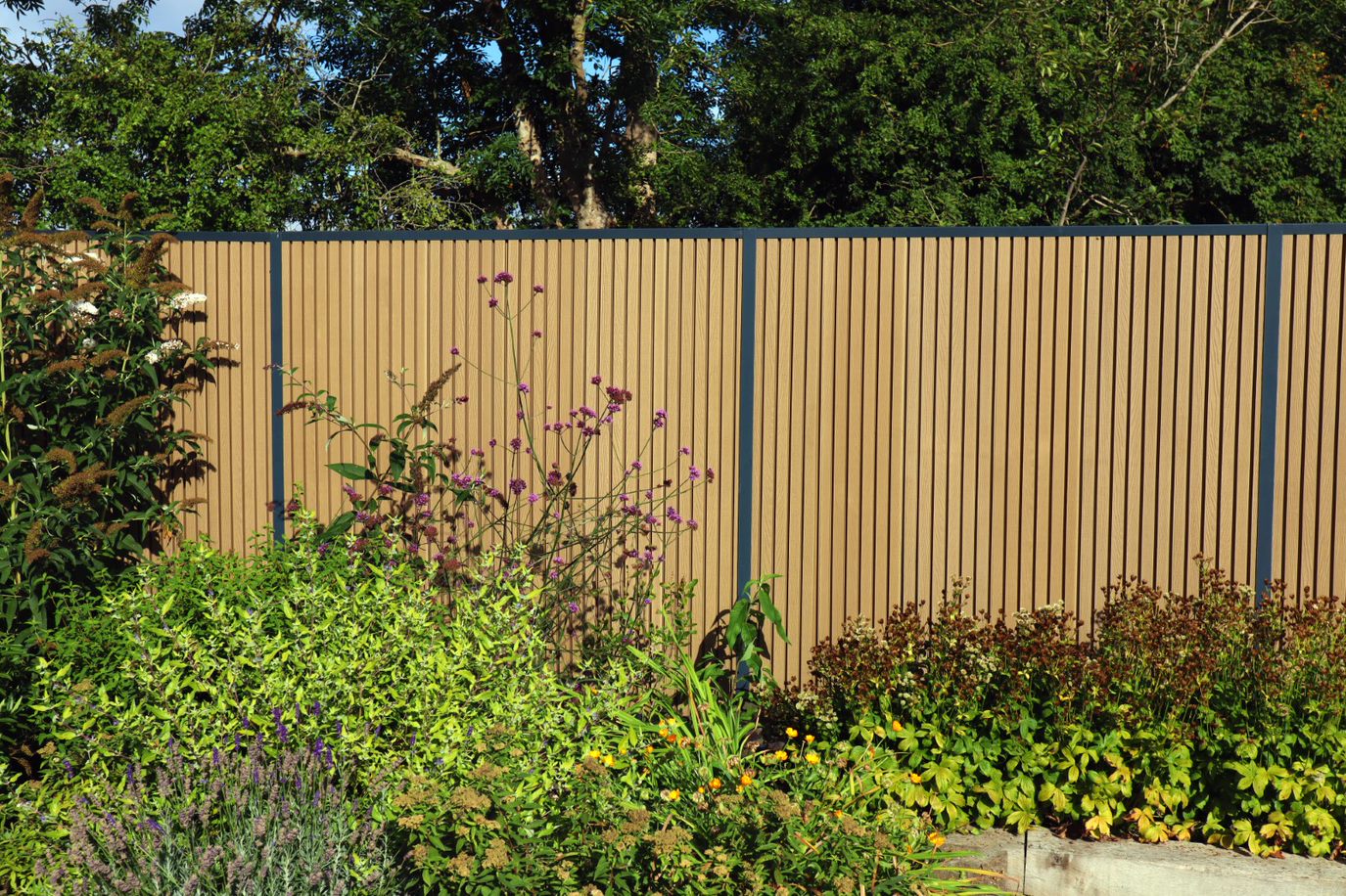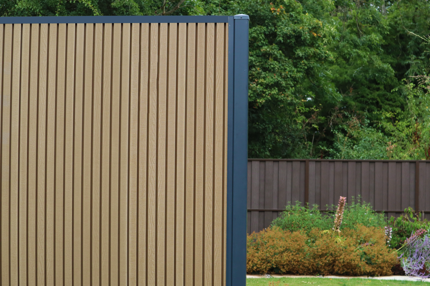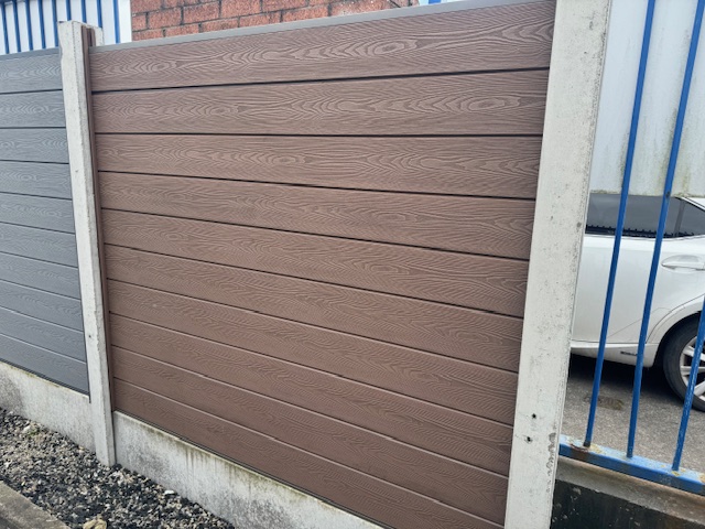 The Composite fencing pictured above can be used as a complete fence or as a replacement for timber panels in concrete posts.
